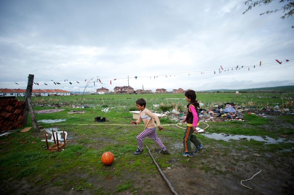 Der achtjährige Mentor lebt mit seiner Familie am Ende der Siedlung, dahinter liegt eine grosse Wiese, ein ehemaliges Tabakfeld, und alle paar Meter: nasse Kartons, zerrissene Säcke, rostende Büchsen. Gleich neben dem Haus befindet sich das Mülldepot K-Ambienti, wo Plastik- und Papierabfälle sortiert, gepresst und gebündelt werden. Die alte, illegale Deponie befindet sich am anderen Ende der Siedlung. Dort hätten die Kinder früher gespielt, sagt Rexhep, Mentors dreissigjähriger Vater. Aber seit einem Jahr besucht Mentor eine öffentliche Schule in Gjakova, keine zwanzig Minuten von der Kolonie entfernt. Zuvor hat er den Kindergarten der Caritas in Ali Ibra besucht.