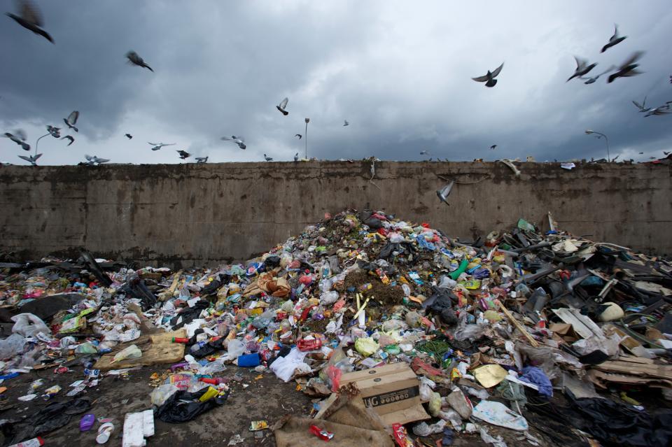 Schwarze Plastikfetzen hängen am Zaun. Tauben graben mit ihrem Schnabel im Dreck. Ein ständiges Rascheln und Gurren stört die Stille. Irgendwo bellen Hunde. Es riecht nach Verdorbenem. Die Sonne verzieht sich. Regen fällt. Von fern sieht es aus, als würde sich der Abfall in Luft auflösen. Schatten steigen hoch. Krähen fliegen auf.