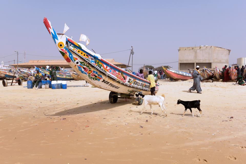 Derweilen streiten sich am Strand ein paar magere Katzen um die Überreste ausgenommener Fische und machen so Hunderten von Vögeln Konkurrenz, die über dem Strand in der Luft kreisen. Zwei alte Männer waschen sich die Füsse, es ist Zeit für das Abendgebet. Eine Erdnussrösterin stillt ihr Kind, ein paar Knaben rennen zwischen Hunderten von Pirogen umher. Fischer flicken die Netze und lachen über einen Mann, der Faxen macht. Thiaba Faye legt eine soeben erstandene Dorade und ein paar Sardinen für das Abendessen in einen Plastikkübel. Ihr Sohn ist seit über einer Woche auf dem Meer. Heute ist er noch nicht zurückgekommen: «Er ist bis nach Mauretanien gefahren.»