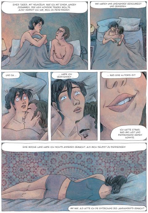 Leïla Slimani, 1981 in Marokko geboren, wanderte mit achtzehn Jahren nach Frankreich aus. Sie arbeitete einige Jahre als Journalistin, bevor sie 2014 ihren ersten Roman, «Im Garten des Menschenfressers», veröffentlichte. Für den zweiten, «Dann schlaf auch du», erhielt sie 2016 den Prix Goncourt, den bedeutendsten Literaturpreis Frankreichs. Auf Lesetour in Marokko mit ihrem Erstling, der von einer Nymphomanin handelt, sei sie erstaunt gewesen, wie viele Frauen an ihren Lesungen offenbar das Bedürfnis hatten, mit ihr über Sexualität zu sprechen. Aus diesen Gesprächen entstand erst das Buch «Sex und Lügen» und daraus dann, gemeinsam mit der Cartoonistin Laetitia Coryn, die Graphic Novel «Hand aufs Herz». Bei etwas gestrafftem und fiktionalisiertem, aber ungefähr deckungsgleichem Inhalt wie dem Essayband folgt die Leserin darin Slimani, wie sie mit Frauen aus ganz unterschiedlichen Milieus spricht. In bunten Farben und weichem Strich erscheinen so etwa Slimanis frühere Haushälterin, eine Soziologin, eine Sexarbeiterin oder eine Ärztin. Dabei schafft es Coryn, mit ihren Zeichnungen genau hinzusehen, ohne jemals in Voyeurismus zu verfallen.